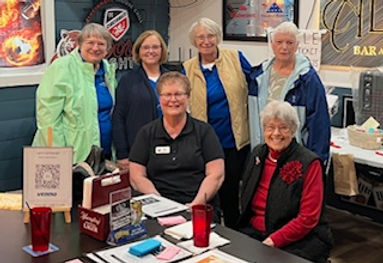 Members had a great time gathering for social time at the Bonbonerie. L-R: Bev, Faye, Arlene, Sue, Amy, Gerri, Shelli, Marlene